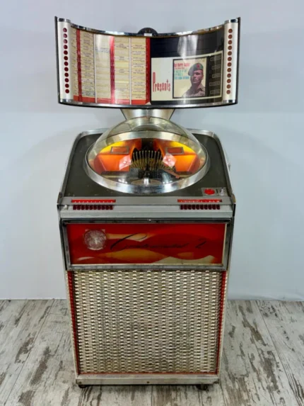 Jukebox Rock-Ola 1488 Regis (Occasion) 1961. Non restauré, non jouable (mécanique bloquée, monnayeur manquant). Projet ...