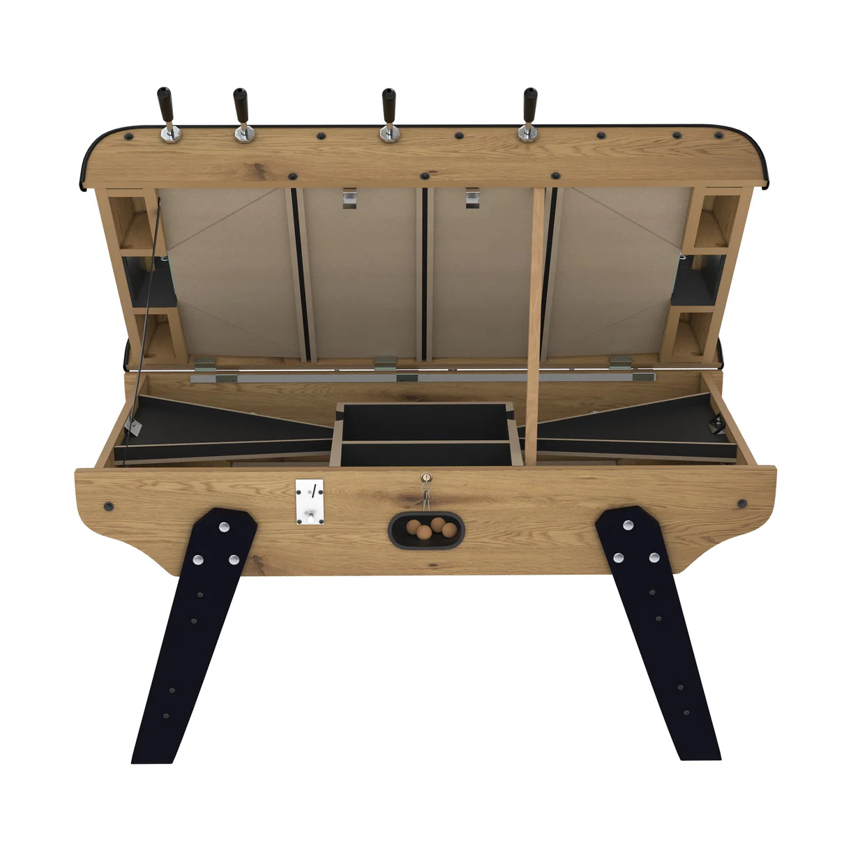 Succombez au charme intemporel du Baby-foot Bistrot Vieux Chêne. Son placage texturé et nervuré offre un rendu réaliste unique pour une ambiance chaleureuse et authentique.