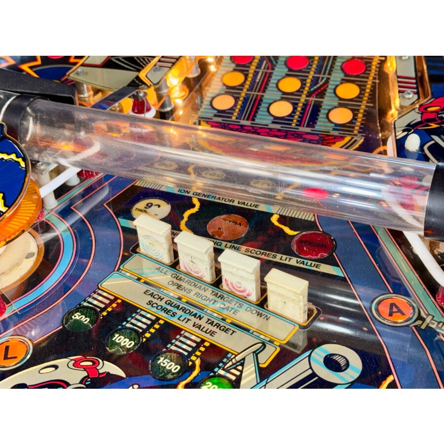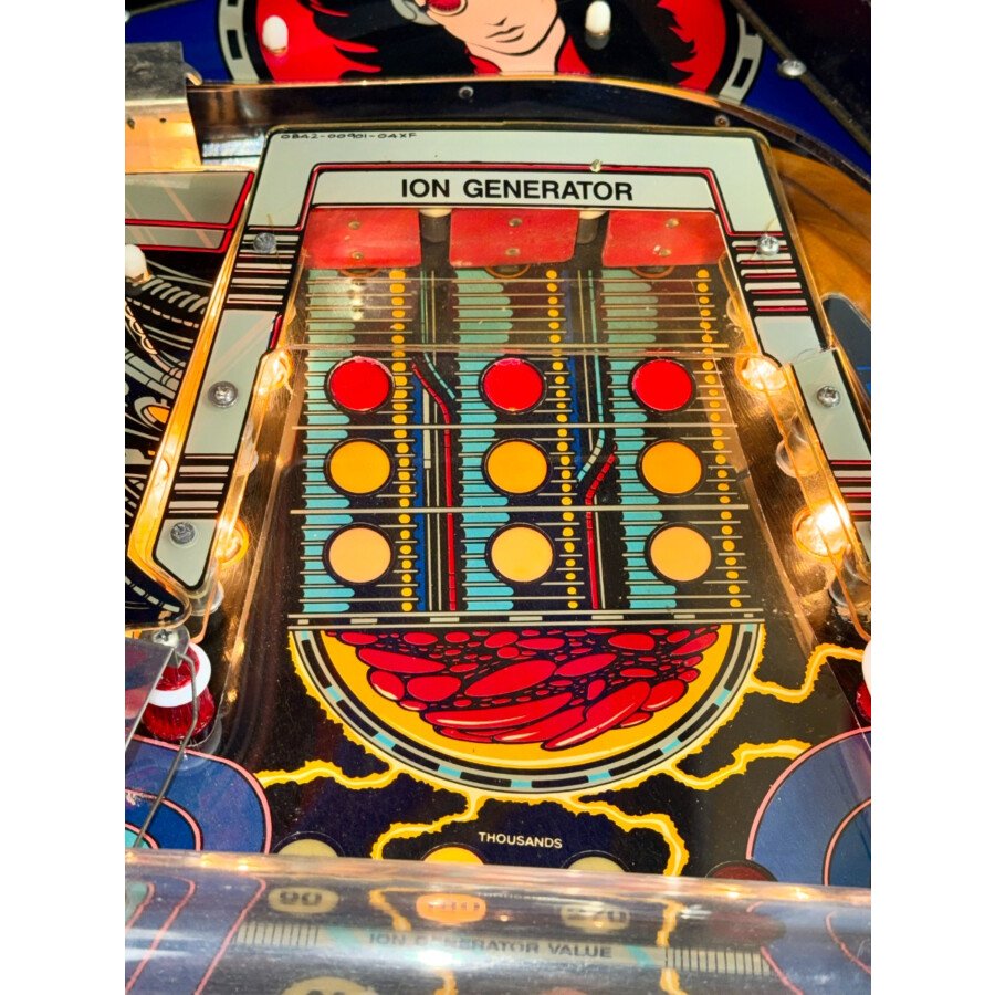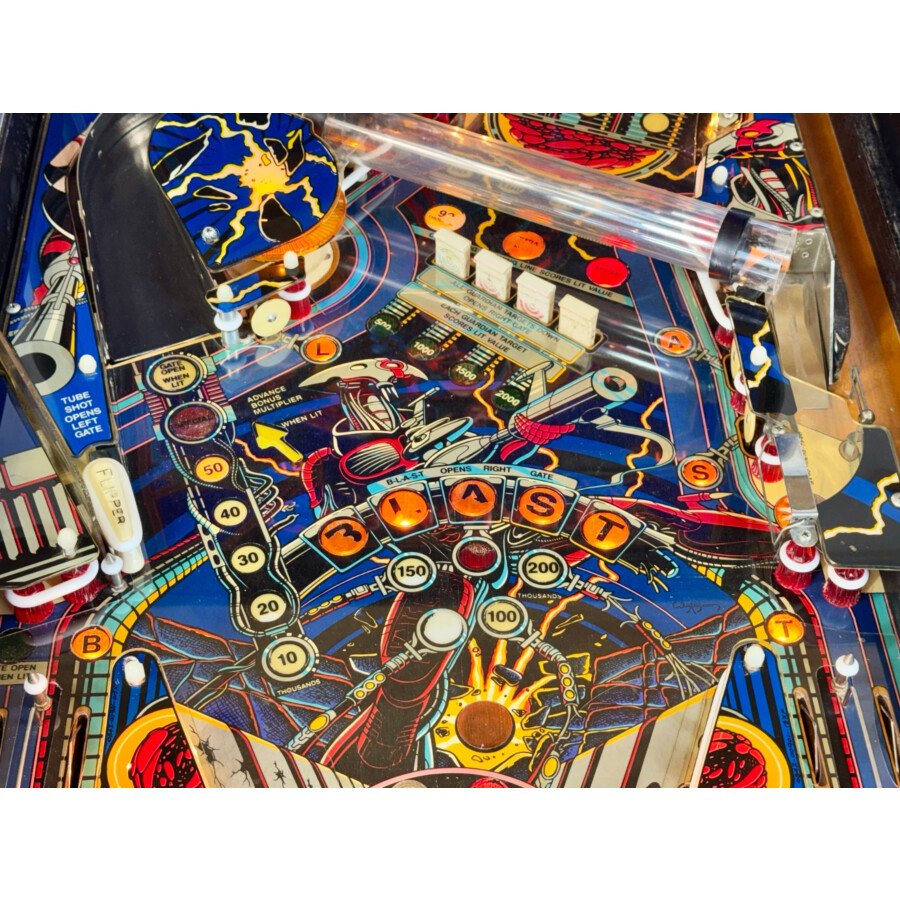 Flipper Bally Cybernaut (Occasion) de 1985. Classique vintage Bally 80s thème sci-fi. Bon état et prêt à jouer (platines 100% testées). Jupe légèrement tordue.