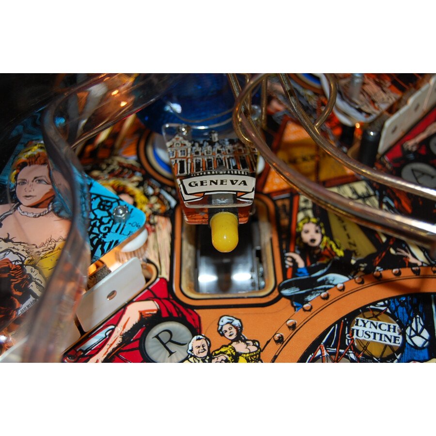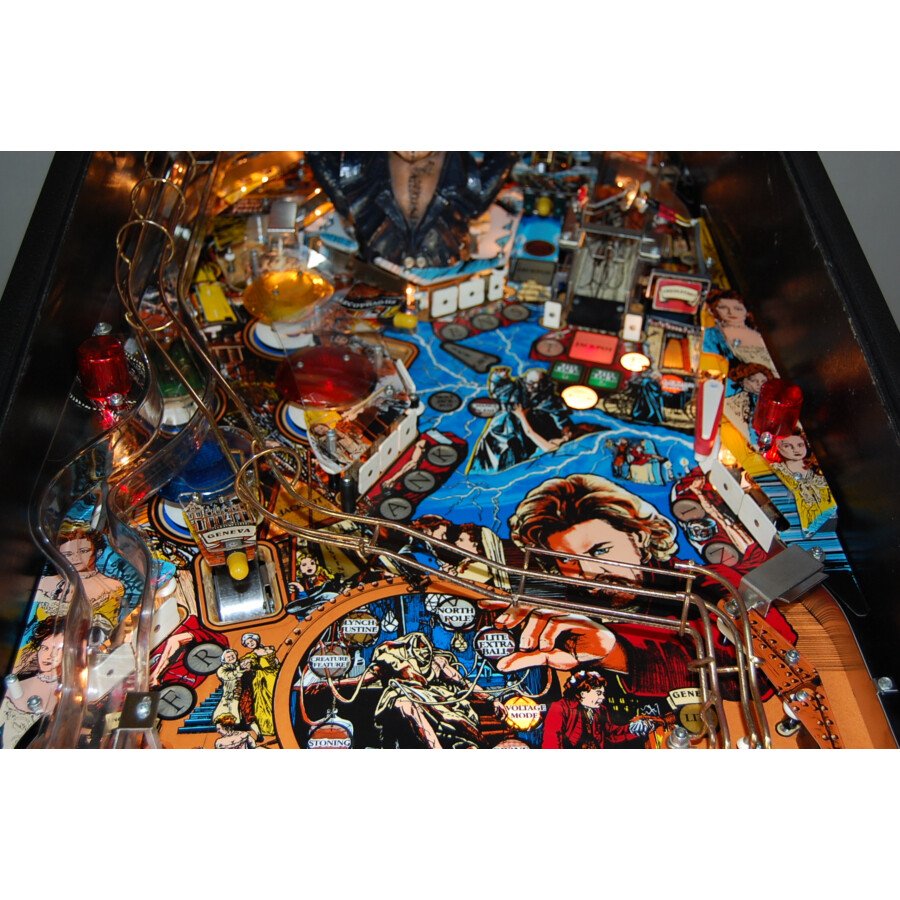 Ce flipper Frankenstein est en bon état général pour son âge et jouable (selon les standards habituels pour ce type de machine d’occasion). Le design graphique exceptionnel, signé Paul Faris, et les mécanismes techniques ingénieux, conçus par John Borg, s’unissent pour créer une expérience de jeu d’une haute tension et d’une grande profondeur. Participez à un véritable spectacle vivant qui peut accueillir jusqu’à six joueurs. Vous serez même accueilli personnellement par Frankenstein au début de la partie ! C’est une machine incontournable pour tout amateur de flippers vintage et de l’univers classique de l’horreur.
