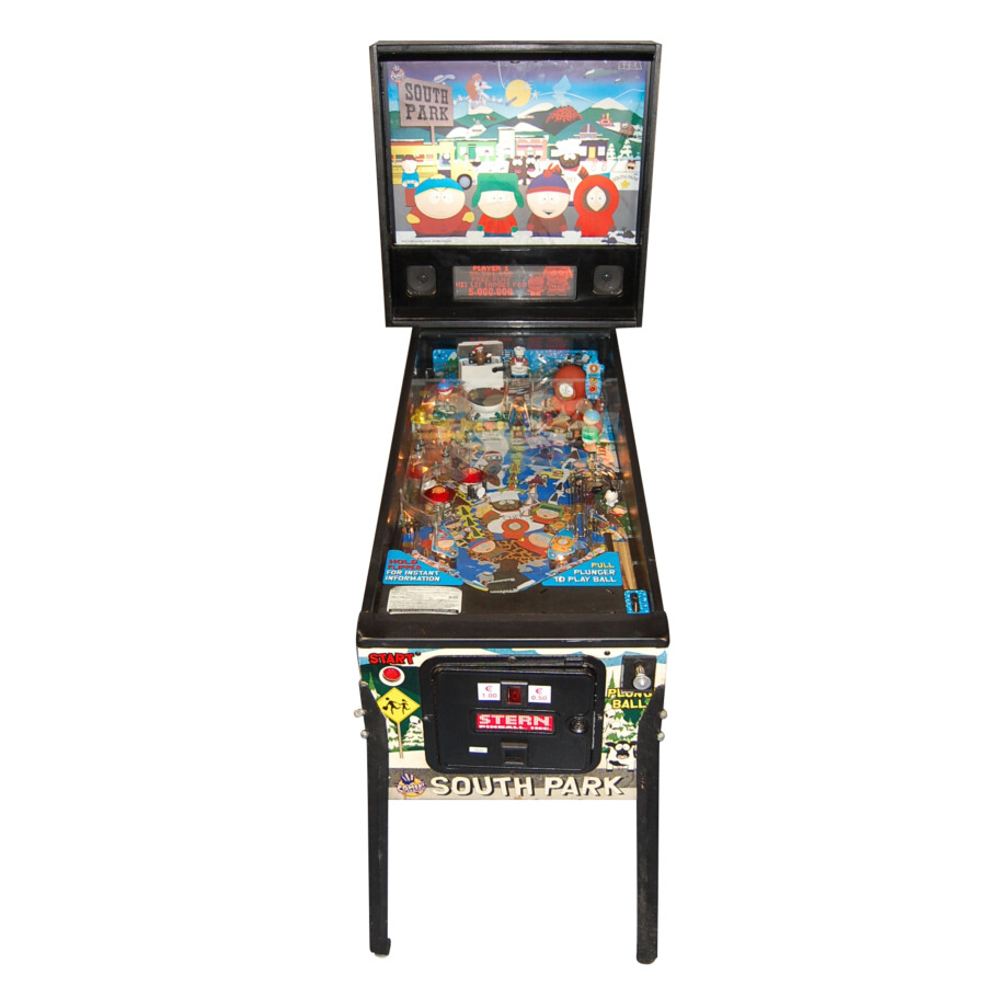 Flipper South Park (Occasion) de 1996 par Sega. Classique vintage sur la série TV culte. Bon état général, jouable, avec personnages interactifs et cuvette unique.