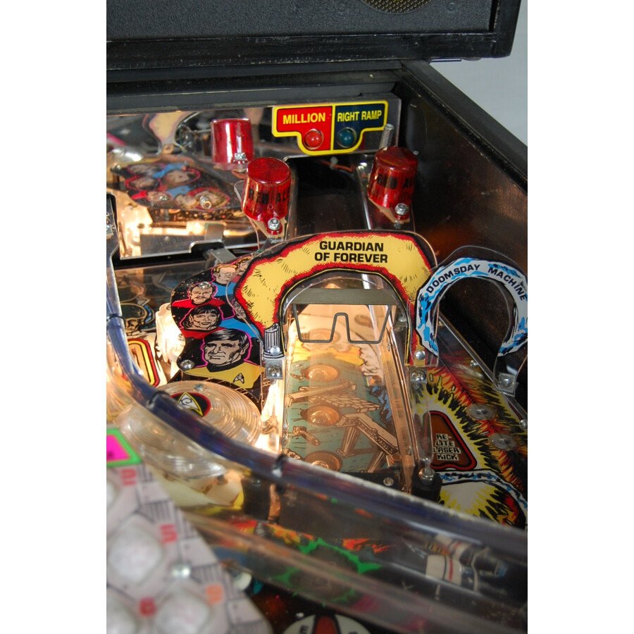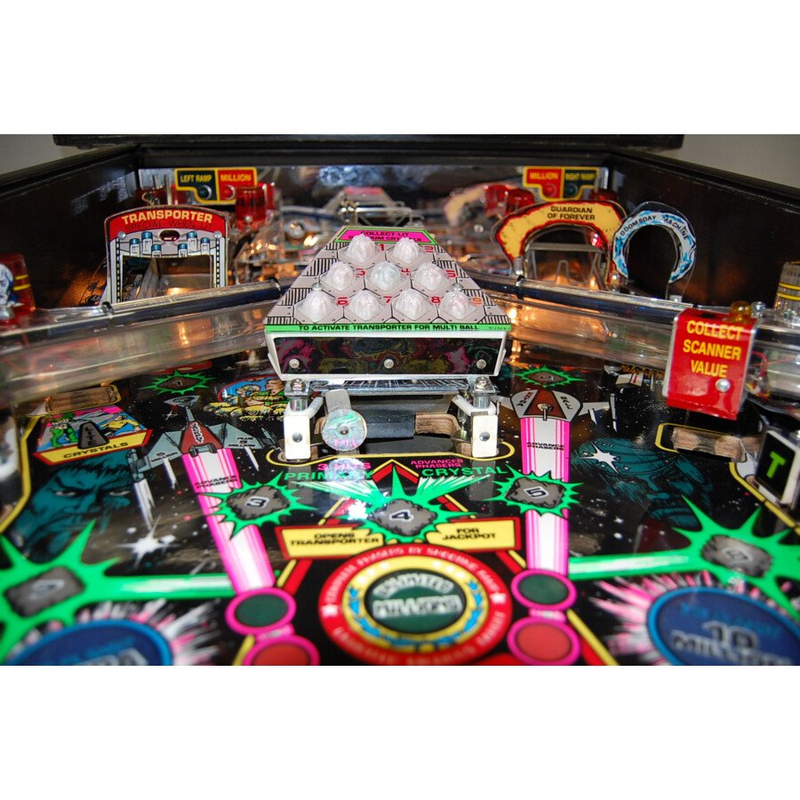 Ce flipper Star Trek est en bon état général pour son âge et jouable (selon les standards habituels pour ce type de machine d’occasion). Il capture l’esprit de la série avec son design, ses sons et ses objectifs de jeu. Collectionnez tous les cristaux pour activer un Multibille intense et réussissez des tirs spectaculaires pour vous téléporter (« Beam Up ») à travers le plateau ! Le son de haute qualité avec des éléments de la série Star Trek renforce l’immersion. C’est une machine idéale pour tout fan de la série, de science-fiction ou amateur de flippers vintage qui cherche une expérience de jeu classique et thématique.