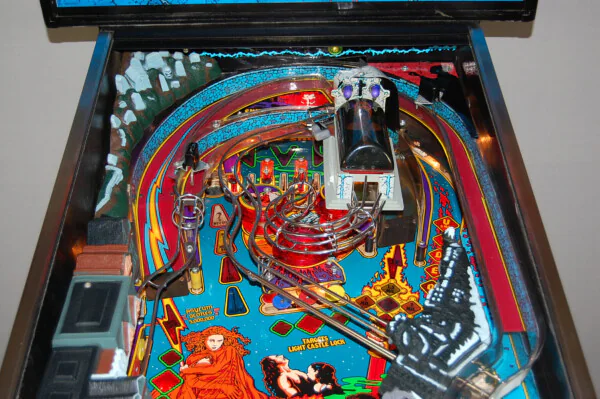 Une immersion totale dans l’horreur gothique avec le flipper Williams Bram Stoker’s Dracula (1993). Célèbre pour son Mist Multiball magnétique où la bille semble flotter sur le plateau et son afficheur rouge sang, ce modèle propose un défi intense et une ambiance sonore exceptionnelle. Une pièce de collection culte pour les amateurs de sensations fortes.