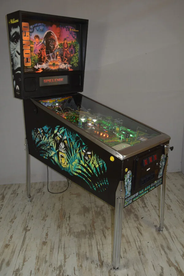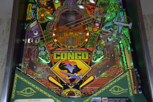 L’aventure ultime au cœur du jungle : le flipper Williams Congo (1995). Ce modèle en état collector est entièrement révisé, équipé de LEDs et d’un protecteur de plateau pour une durabilité maximale. Une pièce rare, dynamique et visuellement superbe, idéale pour les amateurs de cinéma d’action et les collectionneurs exigeants.