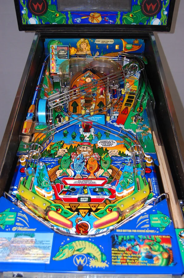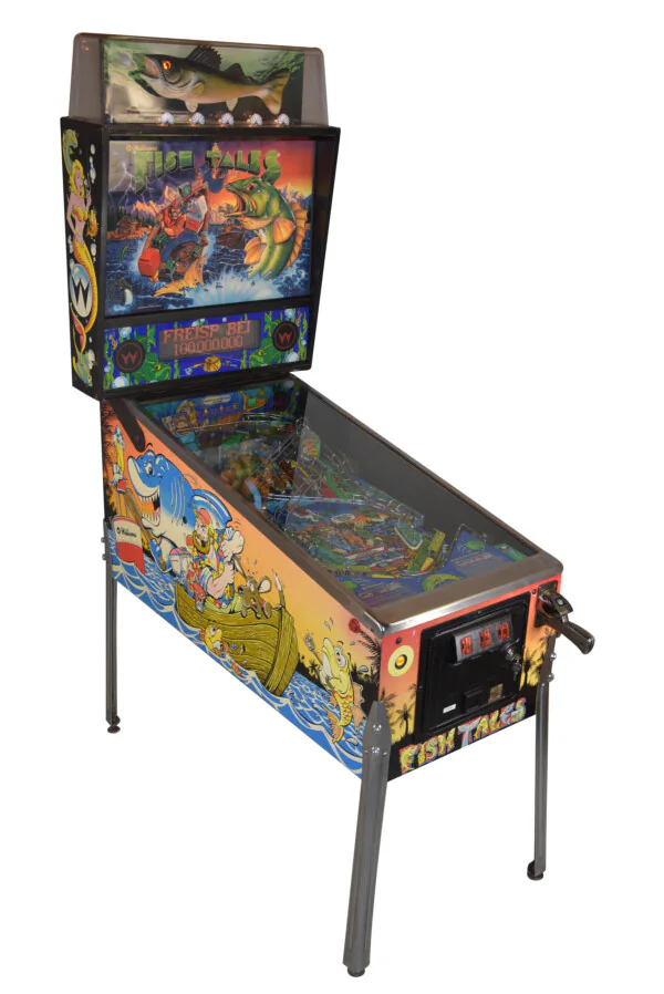 Attrapez le gros lot avec le flipper Williams Fish Tales (1992). Entre son poisson articulé qui s’agite sur le fronton et son moulinet de pêche capturant les billes, ce modèle offre un plaisir de jeu incomparable. Un classique familial incontournable, réputé pour son humour, son mode vidéo original et son gameplay « pêche » unique au monde.