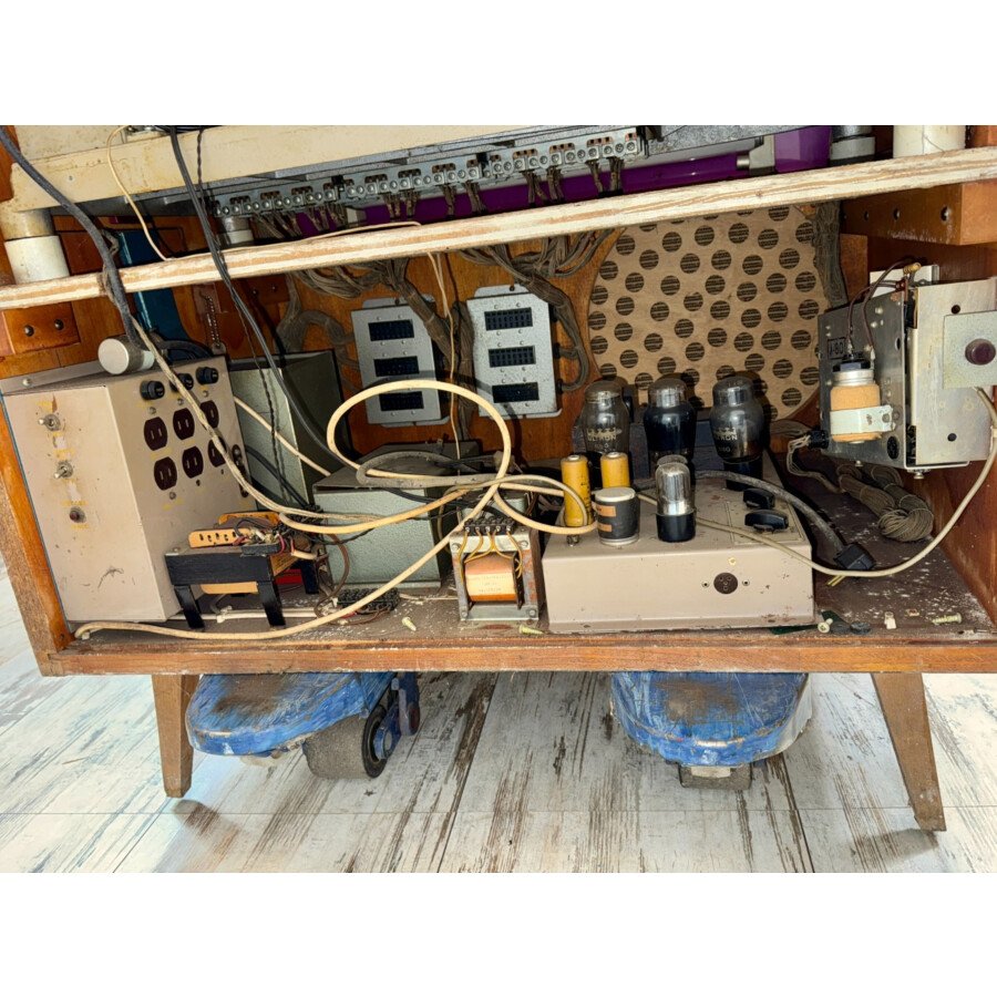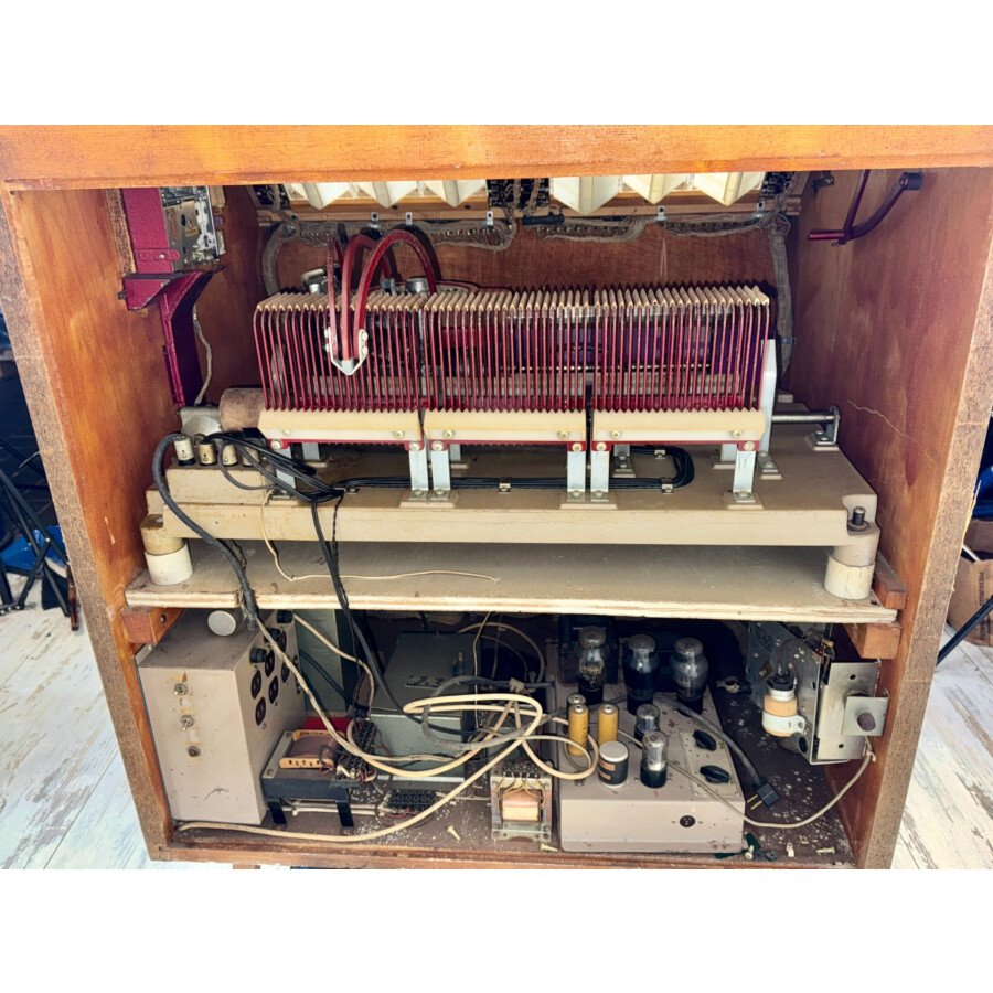 Cet appareil est en état d’occasion, vendu non restauré et non jouable en l’état. Il présente les traces de son utilisation passée et nécessite une attention technique pour retrouver sa fonctionnalité. C’est une opportunité idéale pour un collectionneur, un passionné de Jukeboxes désireux de se lancer dans un projet de restauration, ou quelqu’un cherchant une pièce rare et authentique dans son jus pour de la décoration.