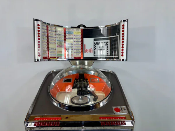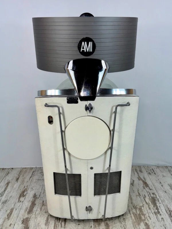L’icône futuriste des années 60 : l’AMI Continental 2 (100 sélections). Design « Radar » unique et chromes de haute qualité. Vendu non fonctionnel pour projet de restauration : mécanique à réviser et amplificateur à réparer. Import US 110V. Une base saine pour redonner vie à un mythe du Jukebox.