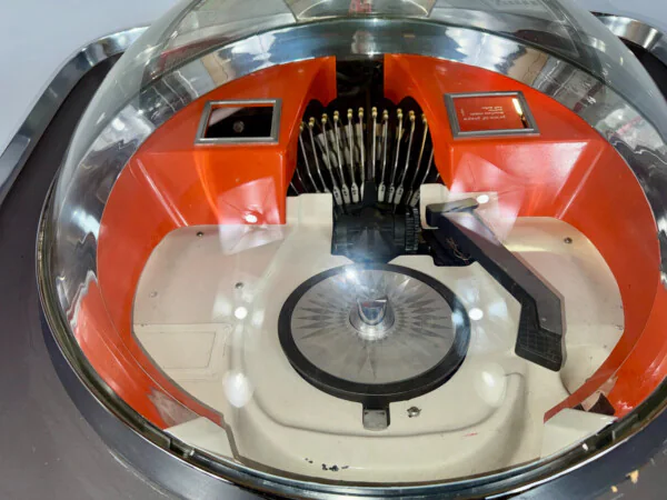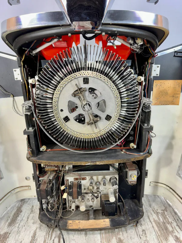 Cet exemplaire est proposé en état non jouable et constitue une base idéale pour un projet de restauration. Bien que complet en apparence, le mécanisme nécessite une révision (le plateau ne démarre pas après la sélection) et l'amplificateur mono présente un bourdonnement important. Issue d'une ancienne restauration américaine, cette machine demande une remise à niveau technique pour retrouver sa splendeur d'antan.