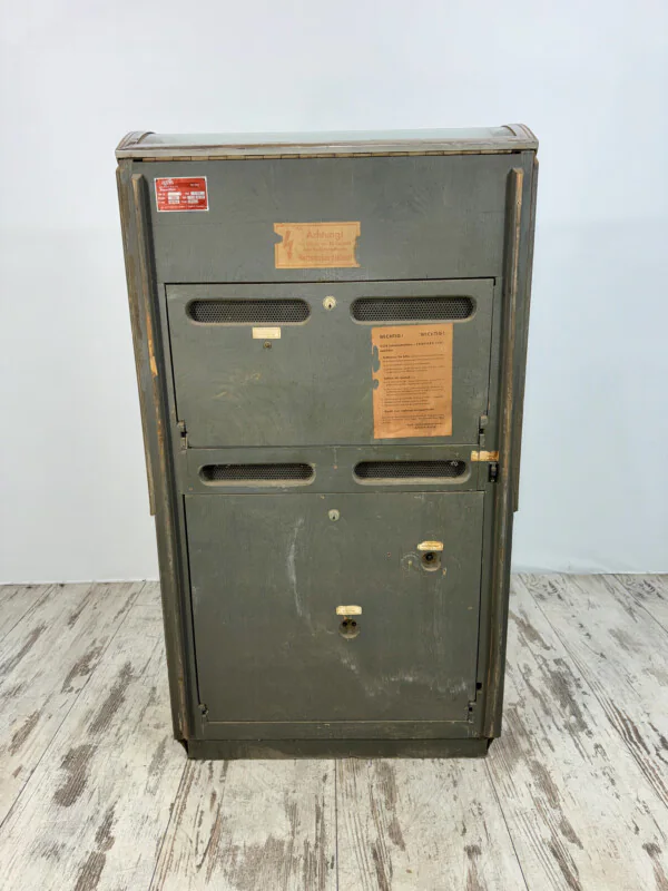 Le charme de l’ingénierie allemande : la Jukebox NSM Fanfare 100 de 1957. Ce modèle 220V est la base parfaite pour un projet de restauration. Vendu non testé et non fonctionnel, il présente une structure complète et une vitre de dôme préservée. Un défi passionnant pour redonner vie à une pièce emblématique du design européen des années 50.