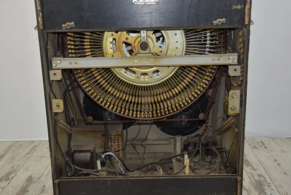 Cet exemplaire est une base de restauration authentique, conservée dans son état d'origine. Particularité rare et précieuse pour les collectionneurs : les documents de livraison d'origine sont encore apposés au dos de l'appareil. Bien que le plateau tourne, le mécanisme de sélection nécessite une révision et l'appareil est vendu comme projet technique.