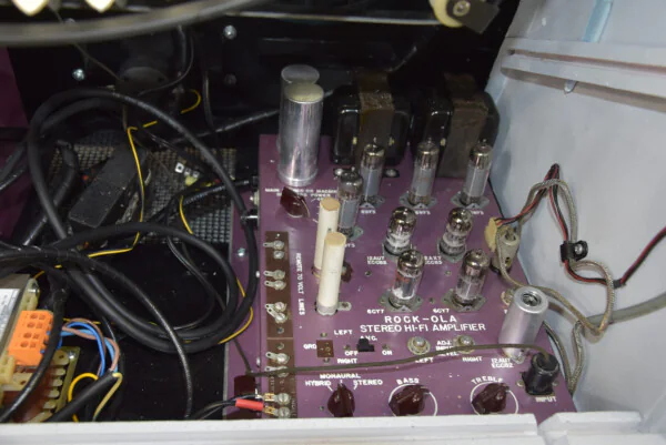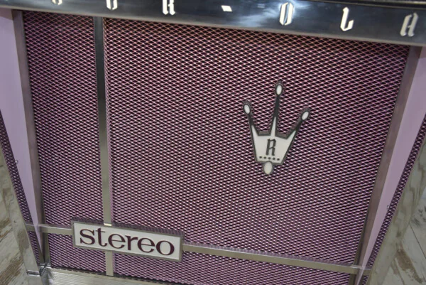 État Esthétique : Meuble magnifiquement restauré. Chrome en bon état avec imperfections légères. Verres en bon état. Logo Rock-Ola illuminé sur la grille.