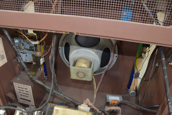 Côté technique, l'amplificateur est fonctionnel. La mécanique est complète en apparence, bien que tous les titres n'aient pas encore été testés. C'est une base saine et déjà bien avancée esthétiquement pour tout collectionneur souhaitant posséder l'un des modèles les plus emblématiques de Seeburg.