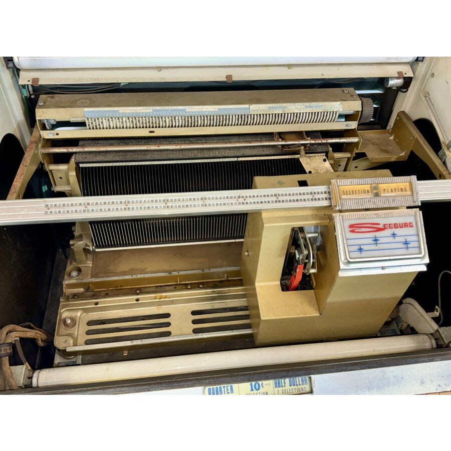 Mécanisme Seeburg Visible : Permet d’admirer la mécanique après restauration.