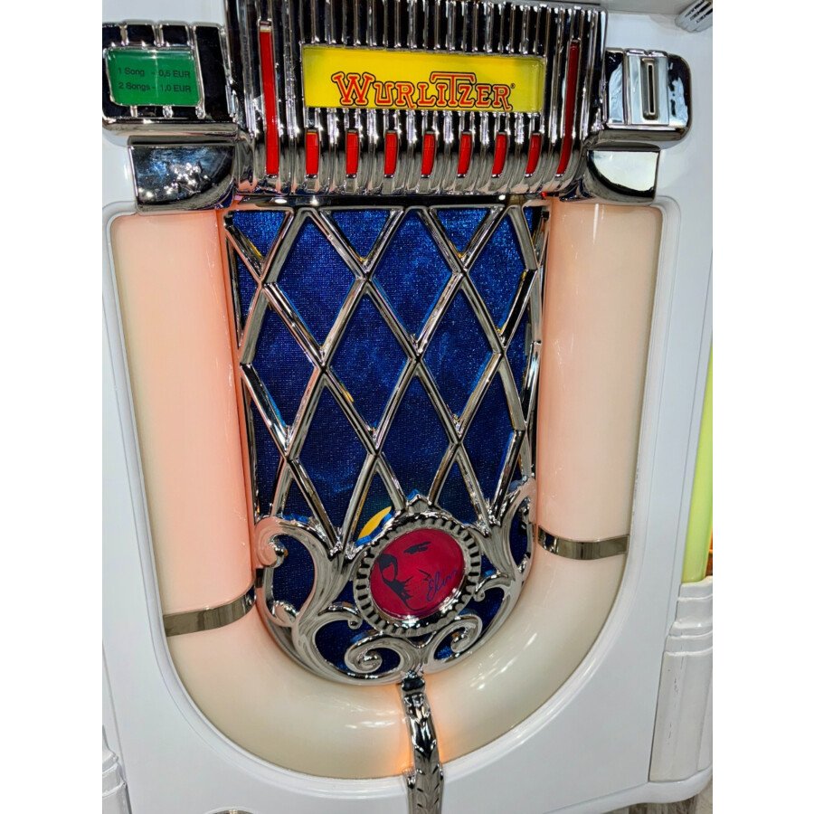 Design Iconique « Bubbler » en Blanc : La forme légendaire Wurlitzer 1015, dans une couleur élégante et lumineuse.