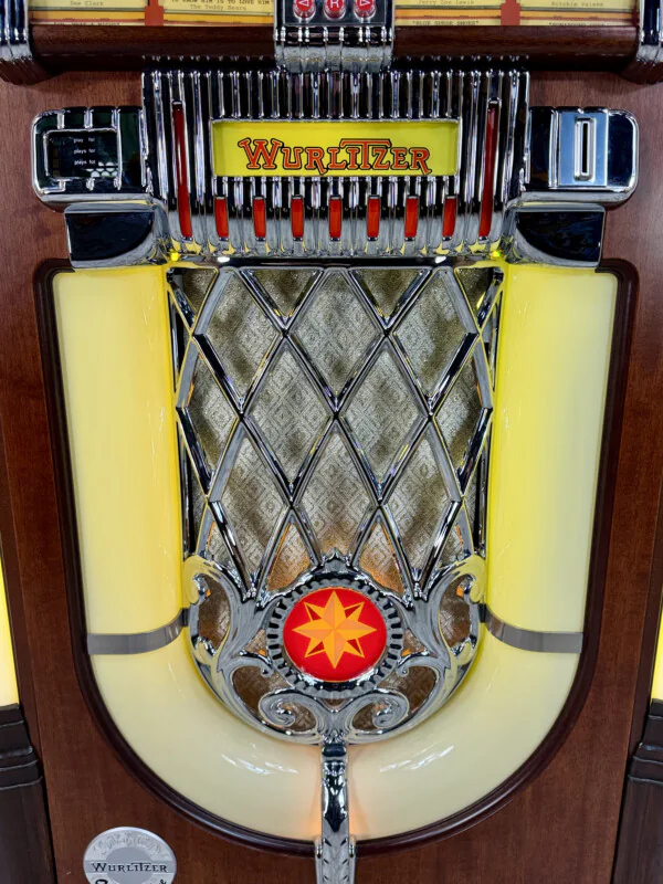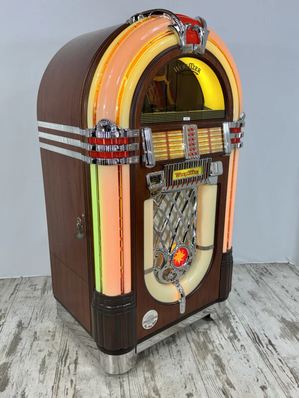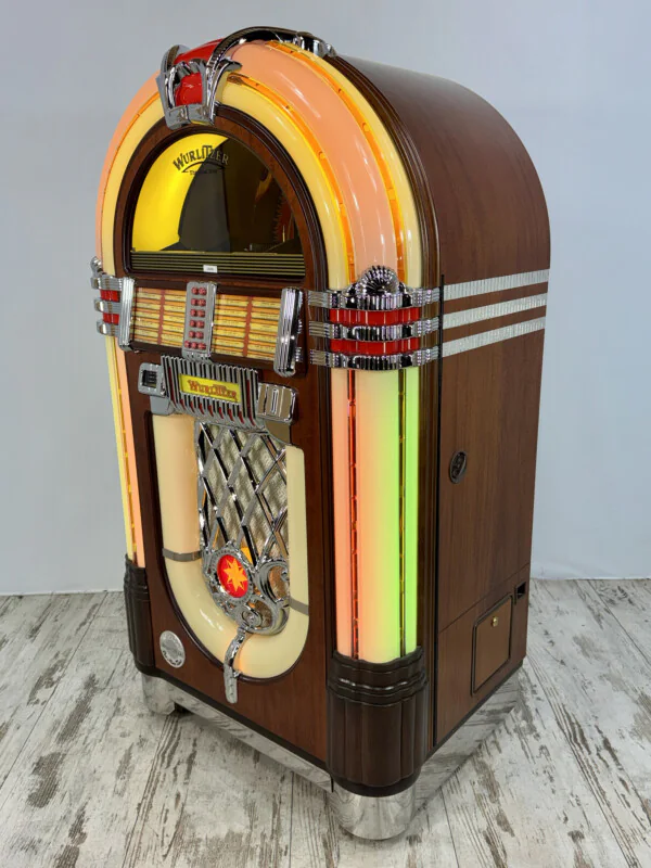 Redécouvrez l'icône absolue du Jukebox avec ce Wurlitzer 1015 One More Time (OMT) CD. Produit en 2001, ce modèle combine magistralement le design nostalgique inoubliable des années 40 avec la performance et la clarté du son numérique.