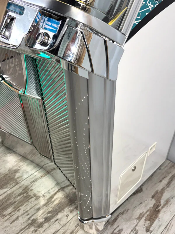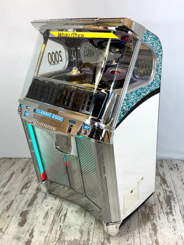 Le modèle Wurlitzer Classic 2000 CD est une réplique fidèle et prestigieuse du célèbre Wurlitzer 2000 Centennial de 1956, créé pour célébrer le 100e anniversaire de la marque. Ce chef-d'œuvre allie l'esthétique extravagante des années 50 à la fiabilité de la technologie numérique contemporaine.