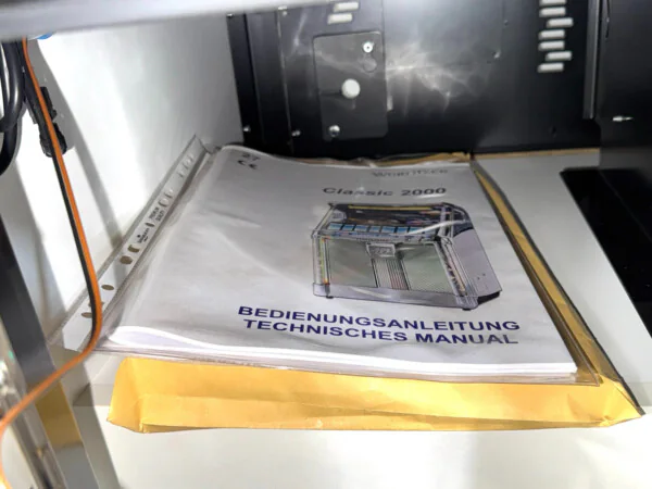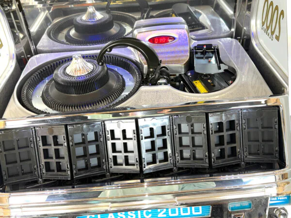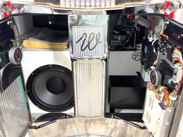 Le mythique Wurlitzer 2000 Centennial de 1956 renaît avec la technologie CD. Appareil à l’état neuf (2012), ce modèle Classic 2000 propose 100 CD, un amplificateur stéréo K99 puissant et un design Art Déco époustouflant avec livre de titres motorisé. Une pièce de collection d’exception, alliant nostalgie et haute fidélité.
